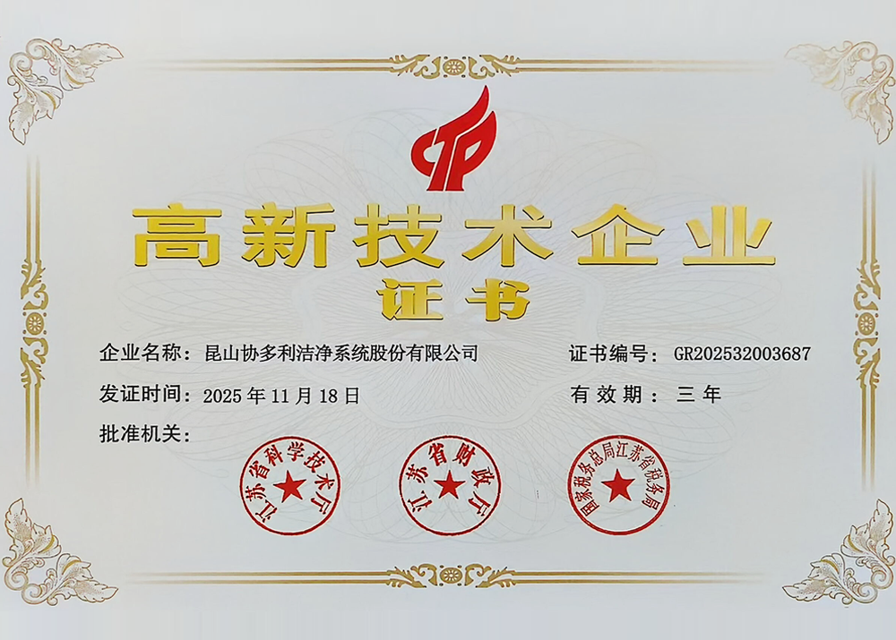 Xieduoli is a comprehensive company that integrates production, construction, and technological research and development. Its products are widely used in industries such as pharmaceuticals, electronics, semiconductors, new energy, food, aerospace, and defense. The company has provided cleanroom system services to over 9,000 clients, with a strong focus on technological innovation and product development. It has obtained numerous patents and holds a leading position in the domestic market, with its products exported to multiple countries and regions worldwide. Currently, Xieduoli has become a top-tier and globally renowned comprehensive cleanroom system solution provider. The company holds 10 authorized invention patents, 94 utility model patents, and 9 software copyrights.